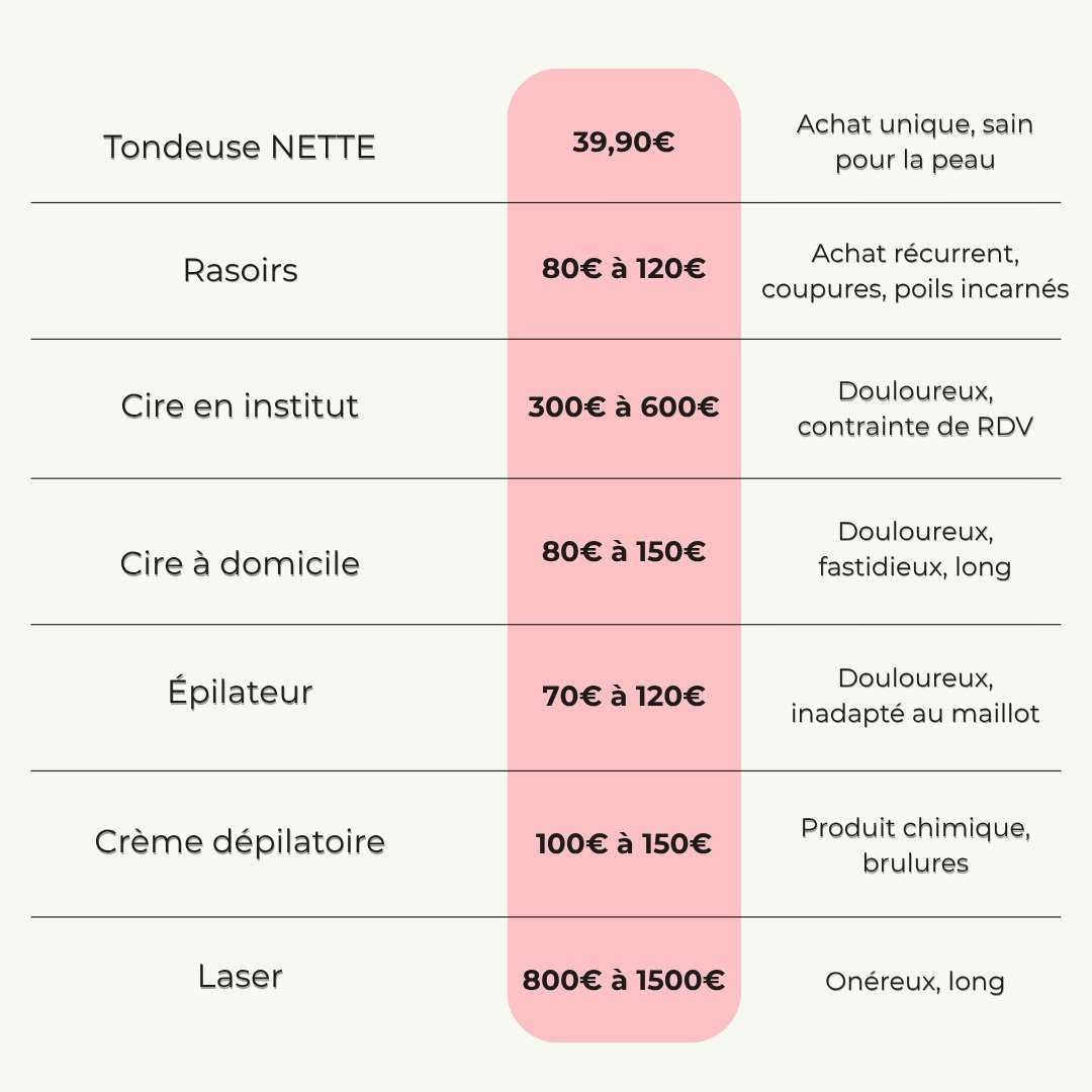 Adieu les séances en institut, les cires, les rasoirs jetables… NETTE est un investissement unique pour des résultats professionnels à la maison.